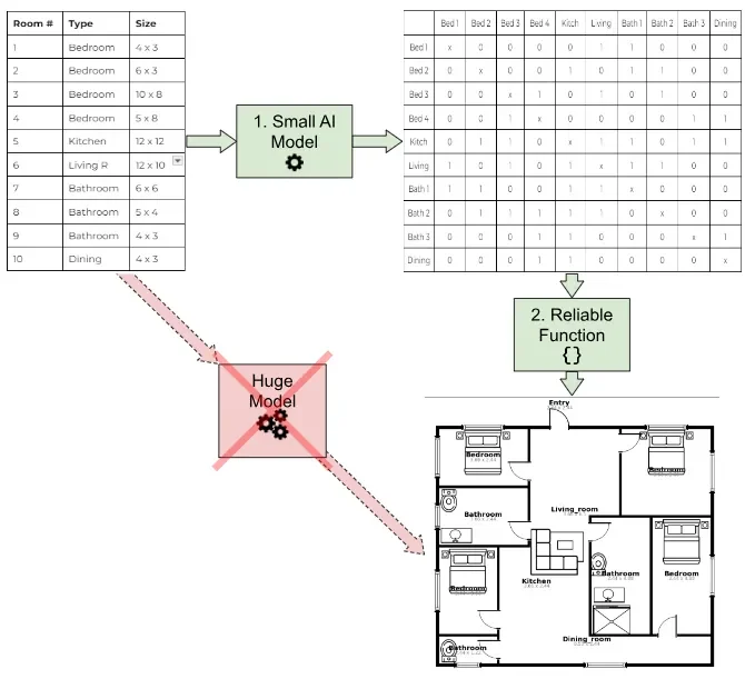 The problem was their approach. They were training an image generation model to go directly from a room list to a complete floor plan with no intermediate steps, and no process breakdown.